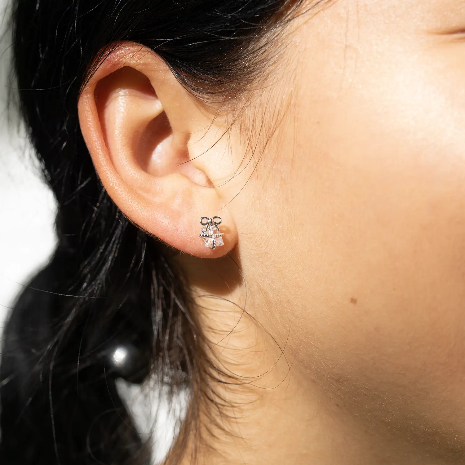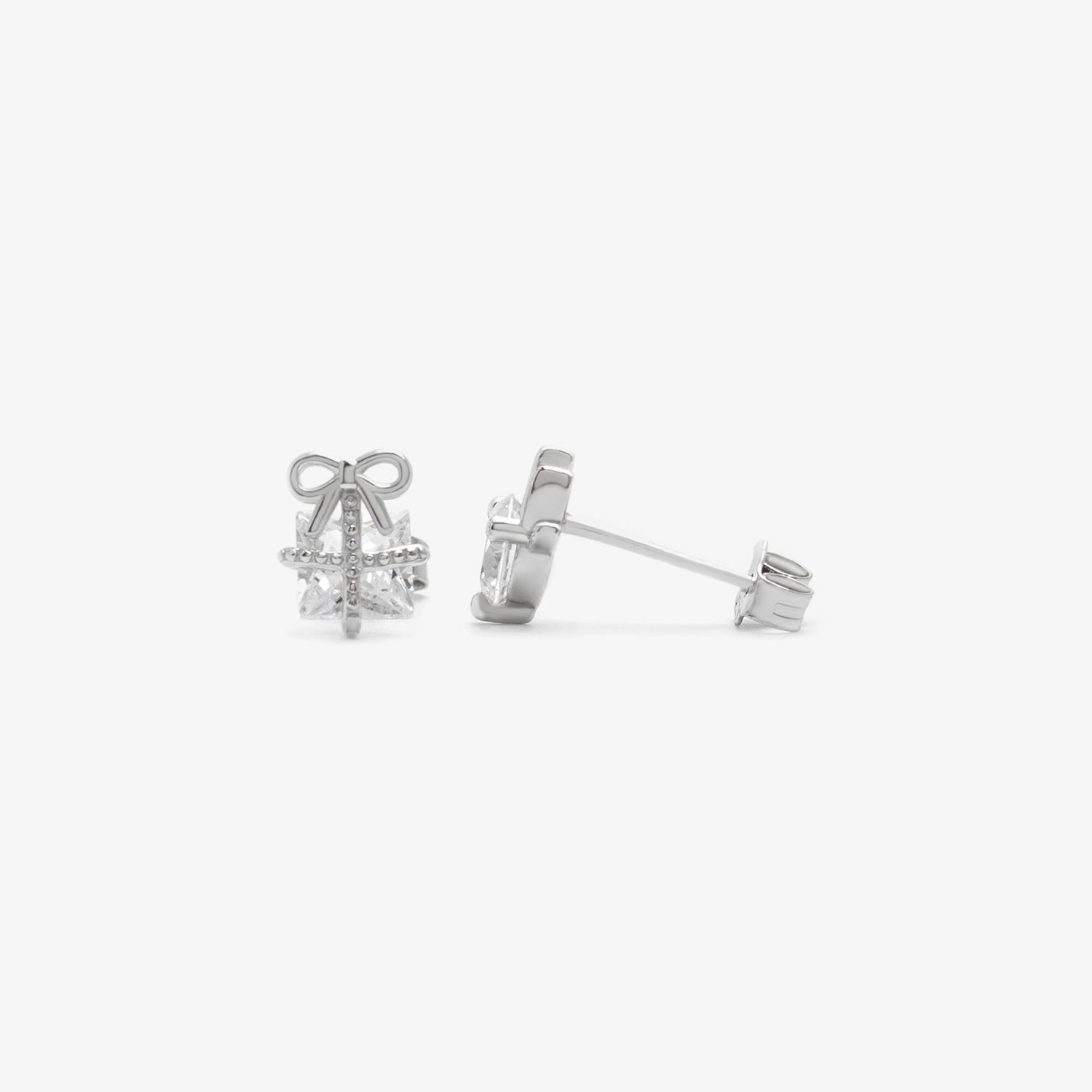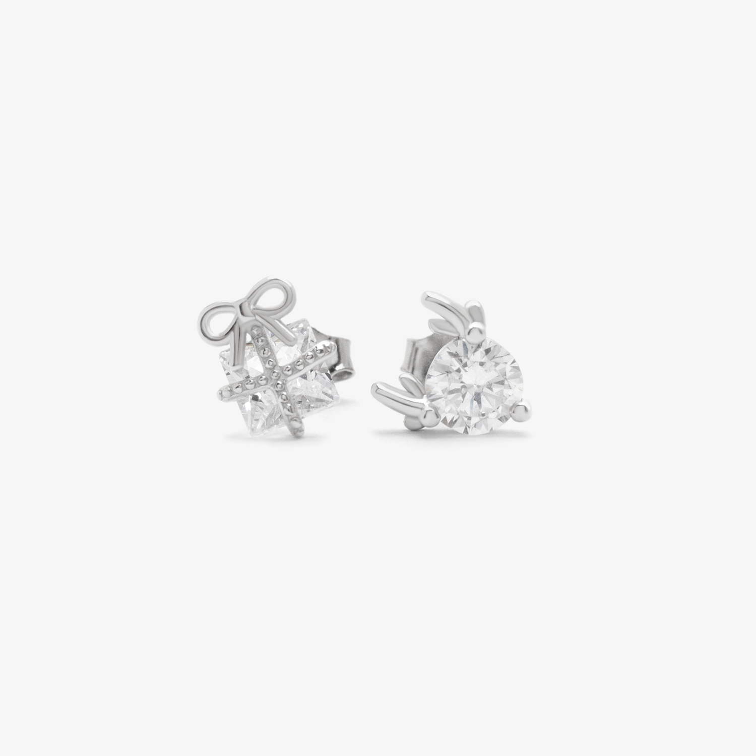 Pierwszy kolczyk, zdobiony subtelną cyrkonią w kształcie zapakowanego prezentu, symbolizuje gest obdarowywania. To hołd dla magii dawania, która potrafi wzbogacić relacje i przynieść radość większą niż otrzymywanie. Na szczycie prezentu precyzyjnie wykonana kokarda dodaje wkrętkom lekkości i wdzięku, jednocześnie przypominając, że najpiękniejsze prezenty kryją się w prostocie i szczerości.