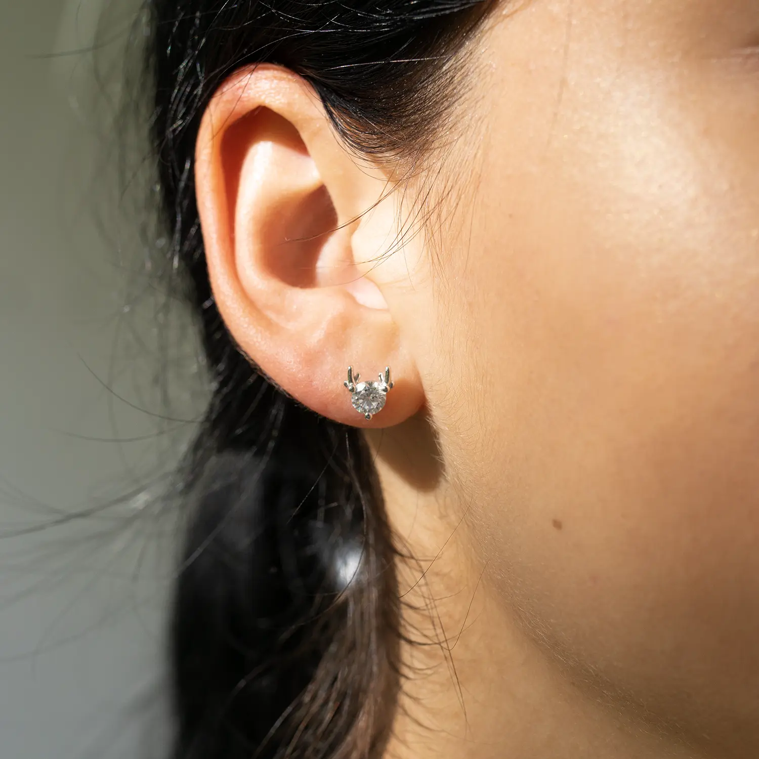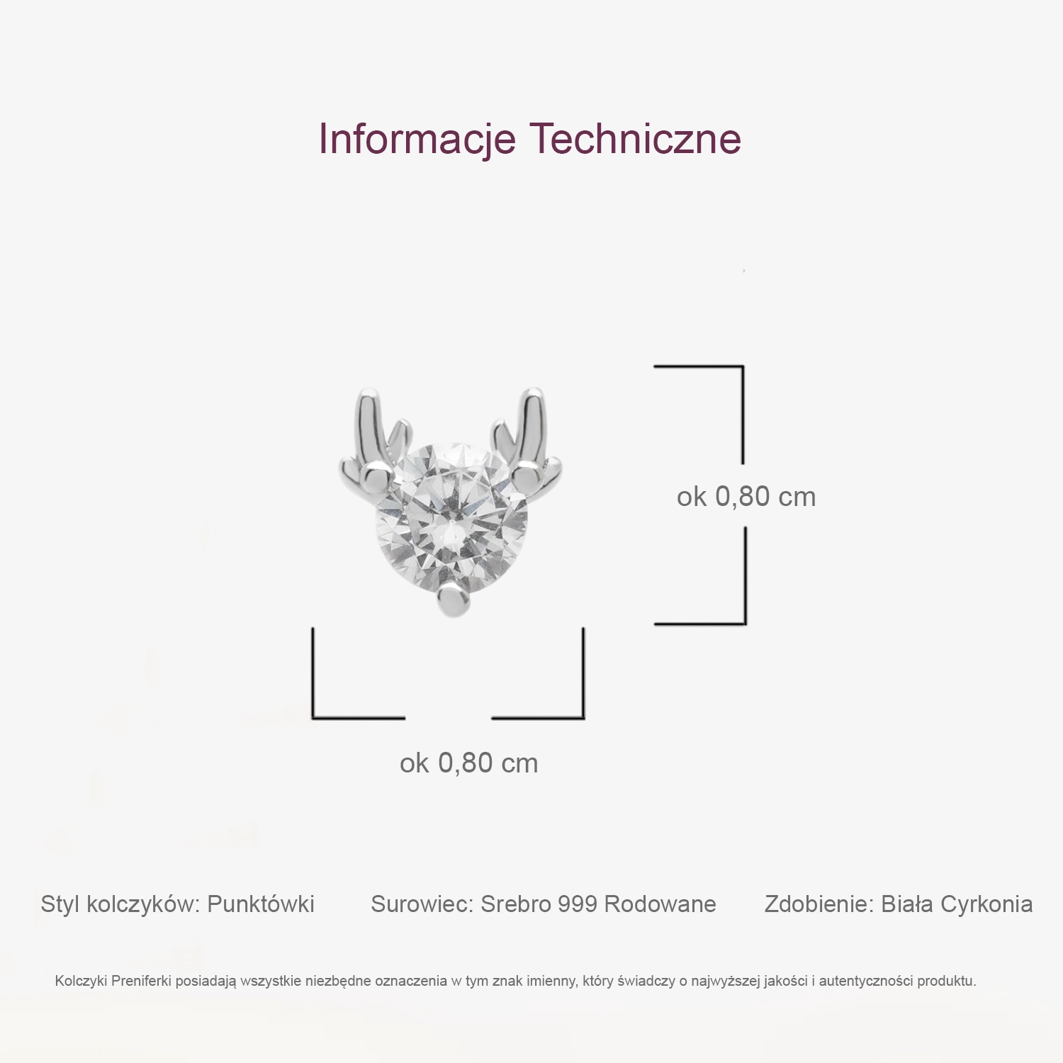 Drugi kolczyk przywołuje obraz renifera. Eleganckiego i majestatycznego zwierzęcia, które od wieków uosabia magię świąt. Renifer, ozdobiony cyrkonią symbolizującą iskrzącą się śnieżną gwiazdę to znak siły, wytrwałości i podróży przez czasy, które prowadzą do najważniejszych chwil w życiu. Delikatnie wyprofilowane rogi renifera nadają mu wyjątkowego charakteru, podkreślając jego naturalne piękno.