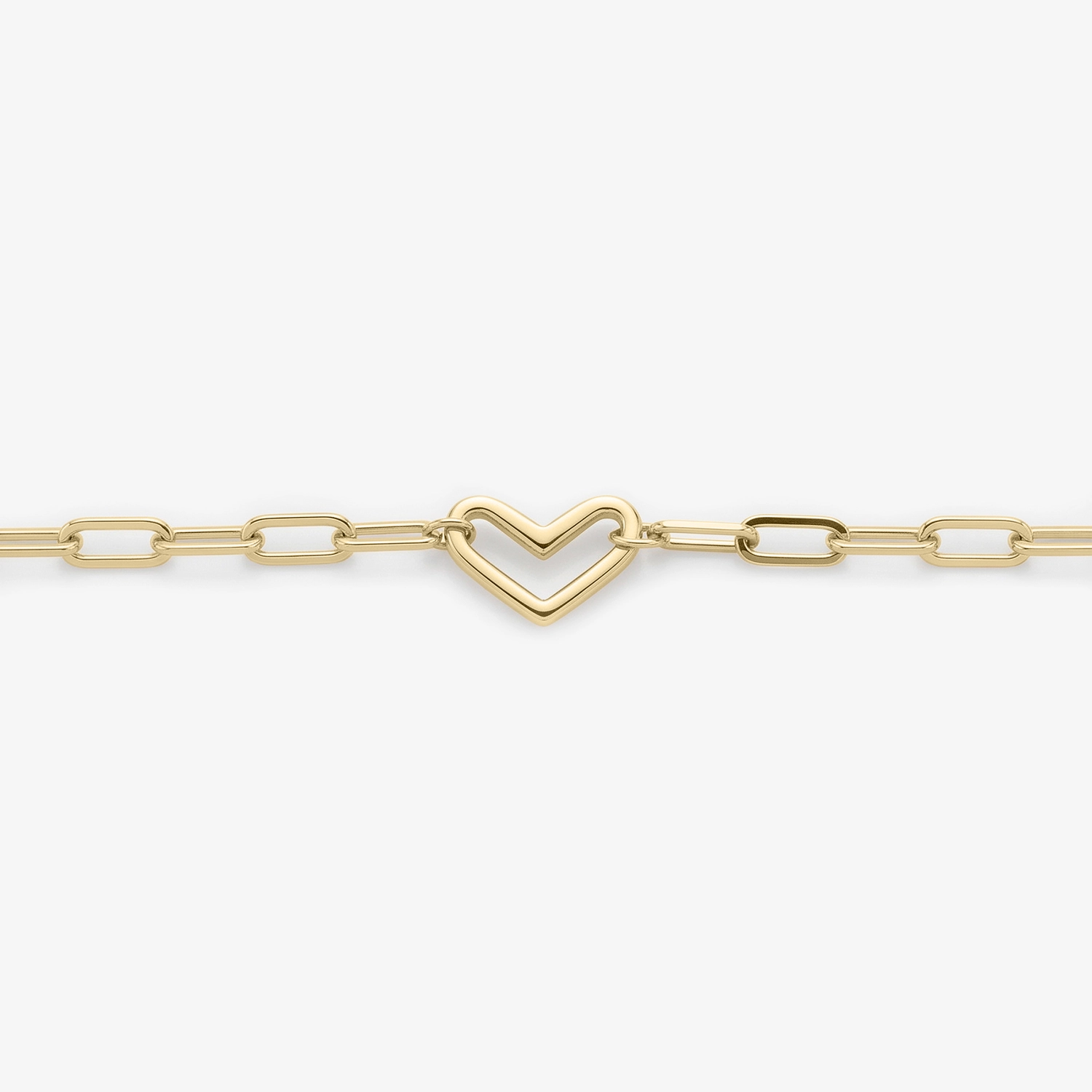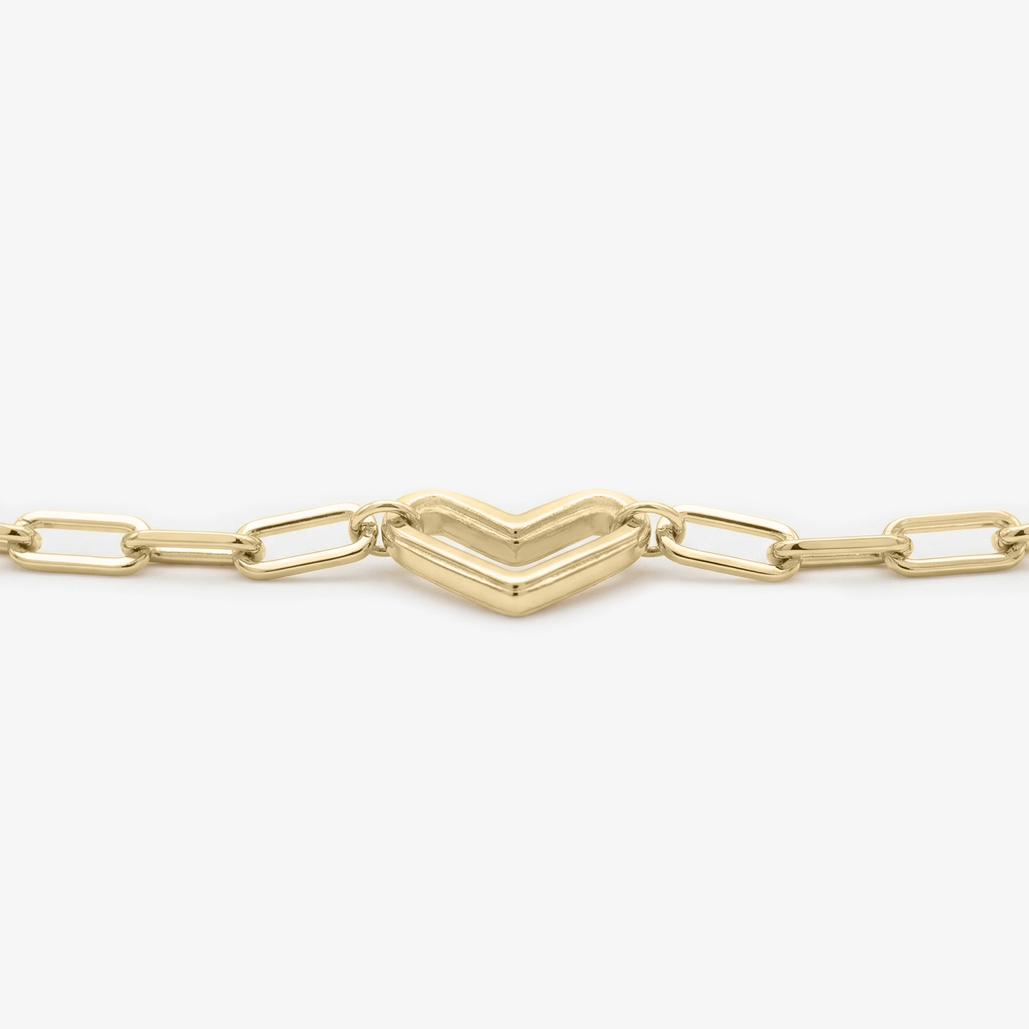 Ten model nie opiera się na przemyślanej konstrukcji. Głównym motywem tej bransoletki jest splot typu paper clip, tworzą spójną bazę, która wizualnie „spina” całość. W tę uporządkowaną linię wpisane zostały trzy serca, rozmieszczone w równych odstępach, a to buduje rytm i daje poczucie ciągłości. To projekt, w którym każdy element ma swoje miejsce i funkcję.
