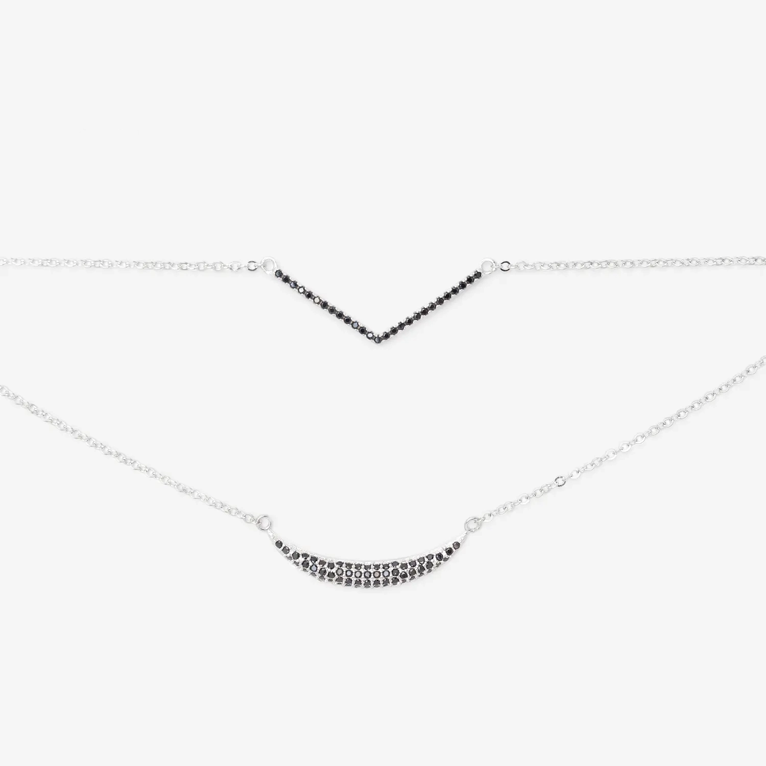 Kilka lat temu nasi Styliści zaprojektowali naszyjnik srebrny typu celebrytka Dots z myślą o nowoczesnych kobietach, które cenią sobie zarówno estetykę jak i ukryte znaczenie elementów biżuterii. Ten wyjątkowy naszyjnik to połączenie dwóch srebrnych zawieszek o geometrycznych kształtach zawieszonych na różnych długościach łańcuszkach. Obie zawieszki są misternie wysadzane granatowymi cyrkoniami, które dodają niesamowitego blasku i głębi każdej stylizacji.