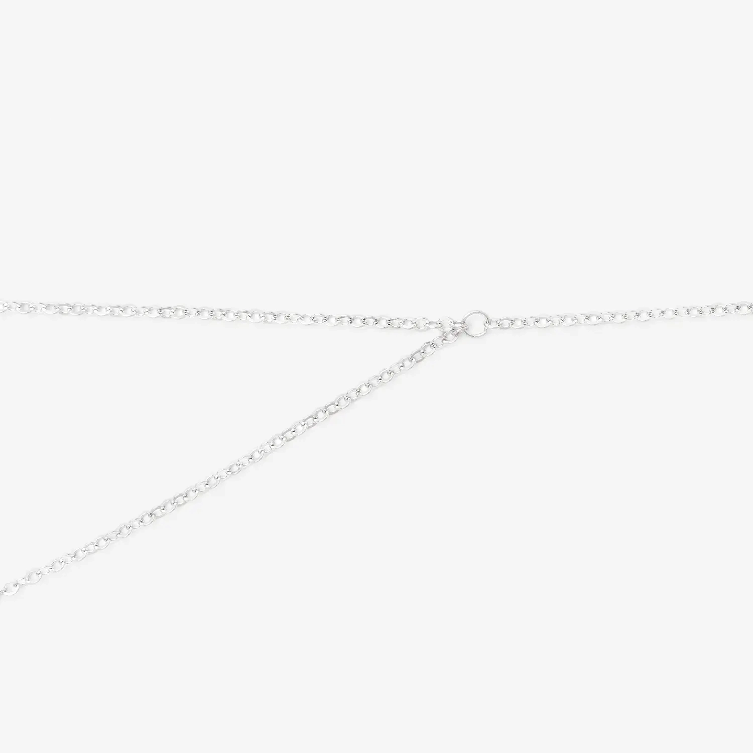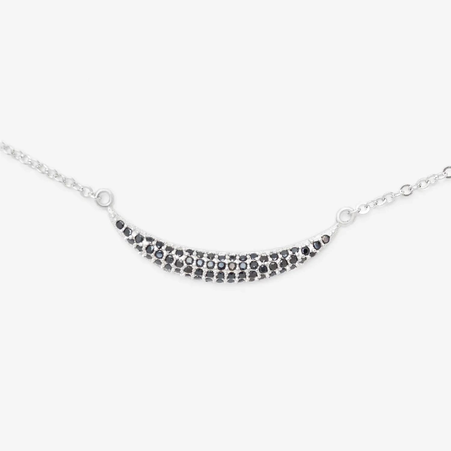 Na dłuższym łańcuszku umieszczona jest zawieszka w kształcie wygiętej łódeczki, która była inspirowana uśmiechem. Kształt ten symbolizuje podróż, odkrywanie nowych horyzontów oraz wewnętrzny spokój. Granatowe cyrkonie, które połyskują w słońcu, przypominają o pięknie drobnych chwil i radości jaką możemy czerpać z codziennych doświadczeń.