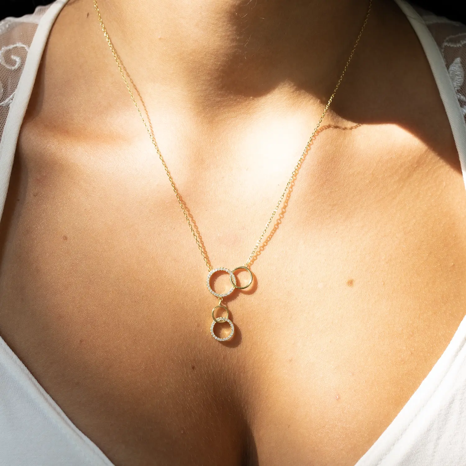 Emmele pozłacany naszyjnik srebrny został stworzony z myślą o osobach, które cenią sobie subtelną elegancję i głęboką symbolikę. Nasi Styliści oraz Biżuteryści uchwycili esencję miłości i harmonii w formie biżuterii, która towarzyszy noszącemu w najważniejszych momentach życia. Każde z zawieszonych kół ma swoją unikalną wielkość i charakter, co symbolizuje różnorodność i złożoność relacji międzyludzkich.