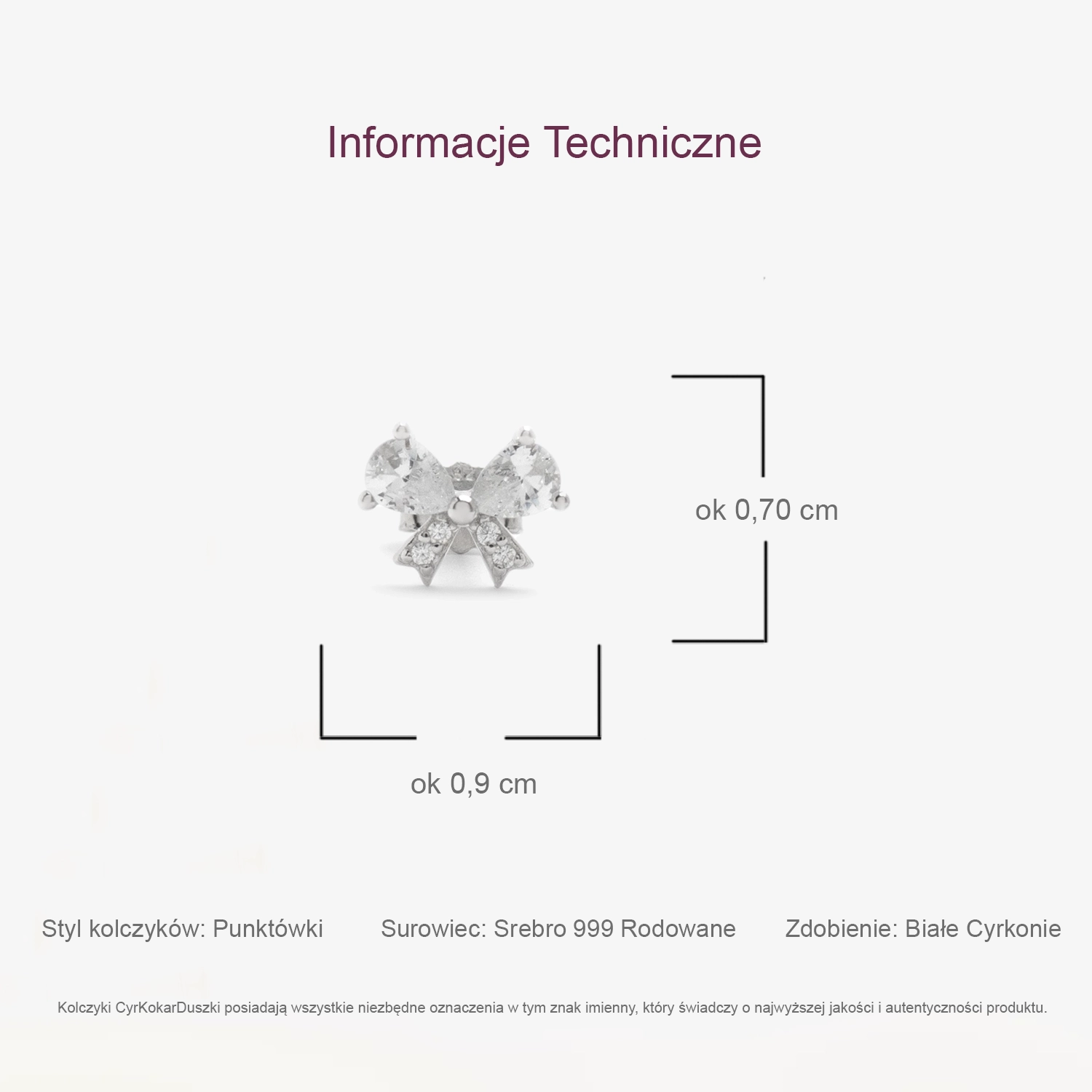 Centralnym punktem CryKokarDuszek jest urocza kokardka, która zachwyca swoją prostotą i finezją. Wkrętki zostały wykonane z najczystszego srebra próby 999, jest to gwarancja niepowtarzalnej jakości i luksusowego blasku. Wkomponowane cyrkonie w srebro dodają biżuterii subtelnego, świetlistego akcentu, który przyciąga spojrzenia, nie tracąc przy tym na delikatności. Kokardka jako najczęściej spotykany motyw symbolizuje harmonię, piękno więzi oraz odrobinę romantycznej nostalgii.