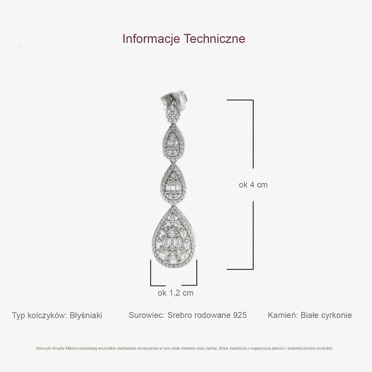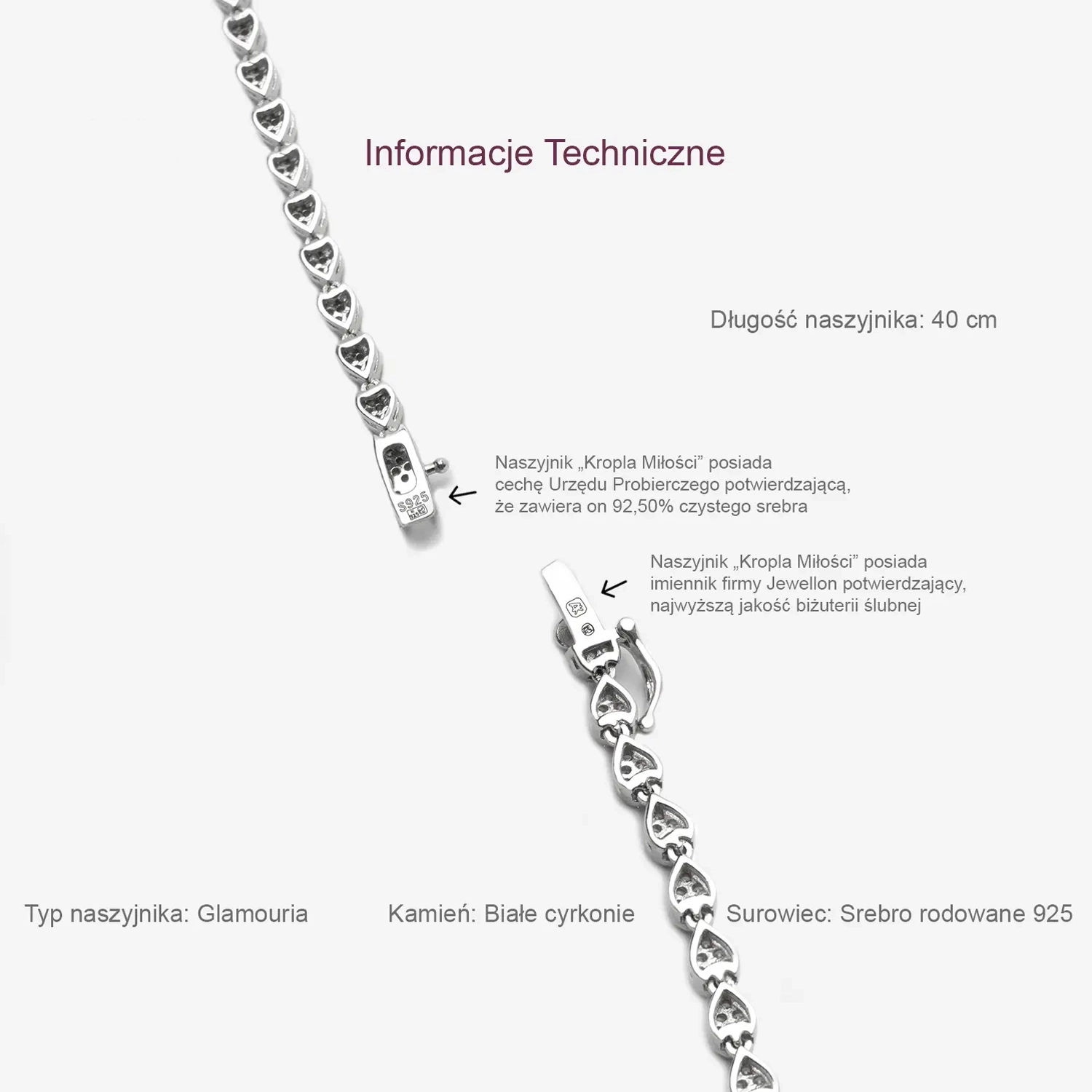 Komplet srebrny 925 Kropla Miłości posiada wszystkie niezbędne urzędowe oznaczenia, w tym znak imienny oraz cechę, które świadczą o najwyższej jakości i autentyczności produktów.