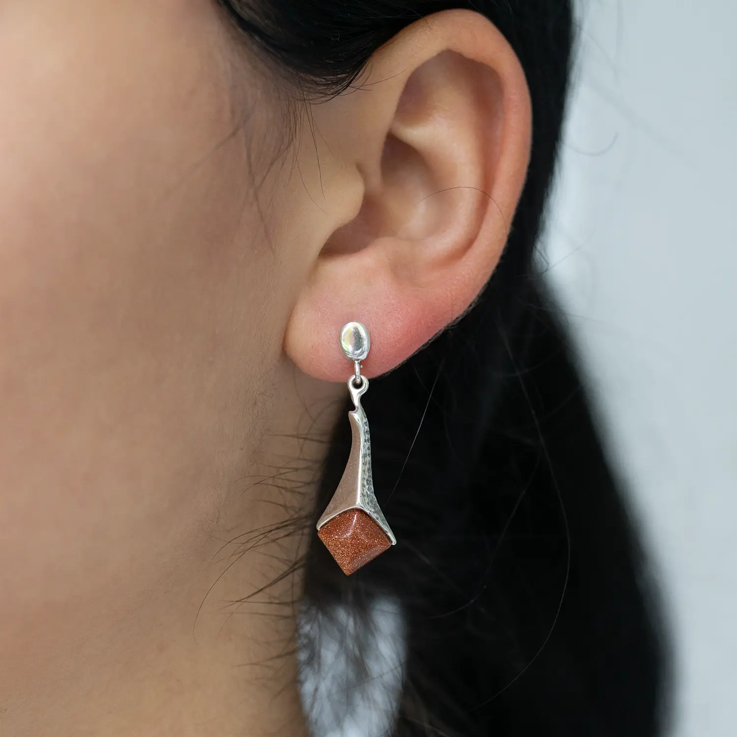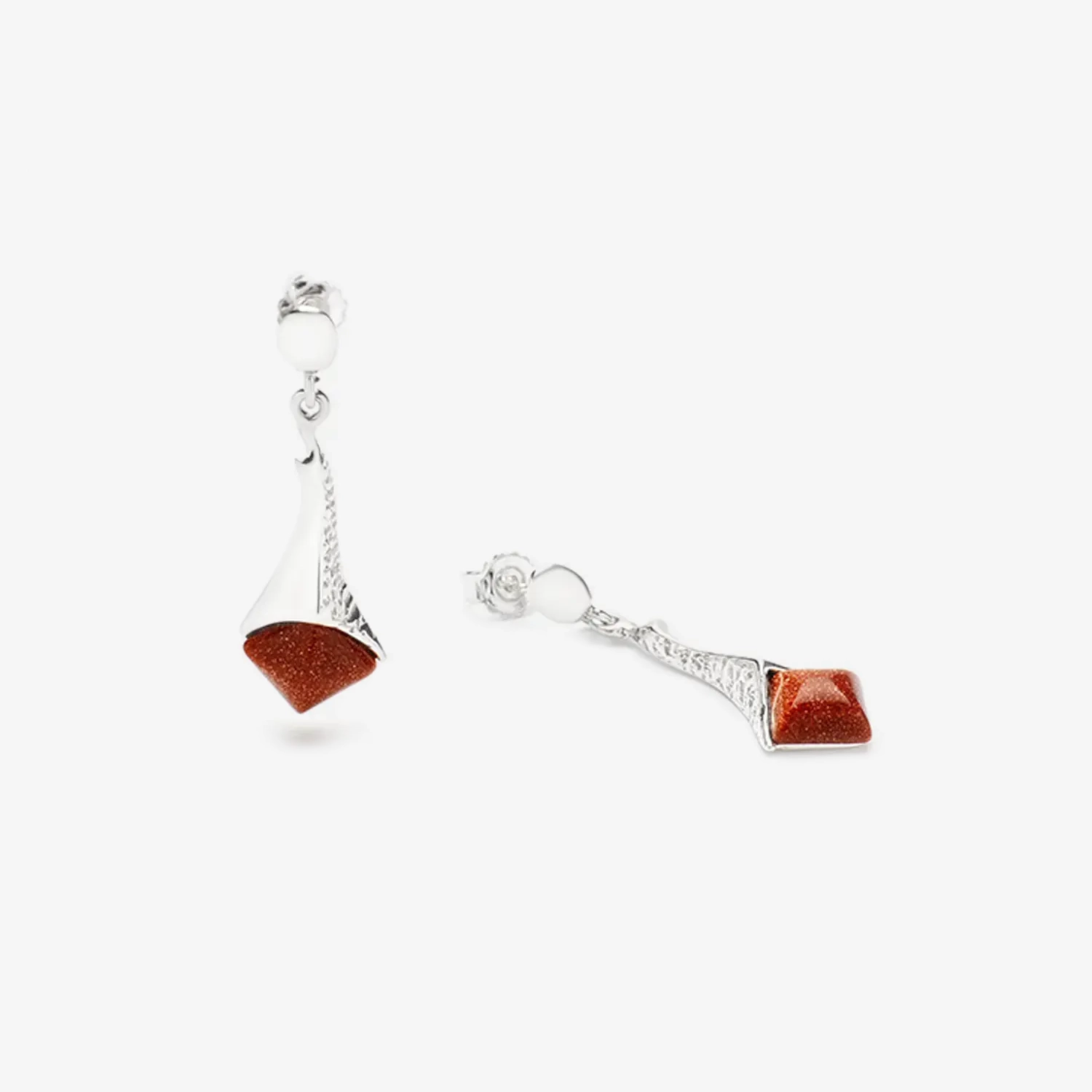 Kamień piasek pustyni, od wieków fascynuje swoją historią, dlatego często nazywany jest także „kamieniem szczęścia”. Jego migoczący blask przypomina tysiące ziaren piasku, które są rozświetlone słońcem nad pustynnym horyzontem. Barwa ciepłego brązu z drobinami złota to symbol ugruntowania, stabilności i ciepła emocjonalnego. Mistrz Feng Shui Jin-Lan twierdzi, że „blask zaklęty w kamieniu to światło, które odbija Twoją energię.” W centrum srebrnego kształtu kamień działa niczym talizman. Przypomina, że nawet w codziennym zgiełku można odnaleźć spokój, radość i odrobinę magii.