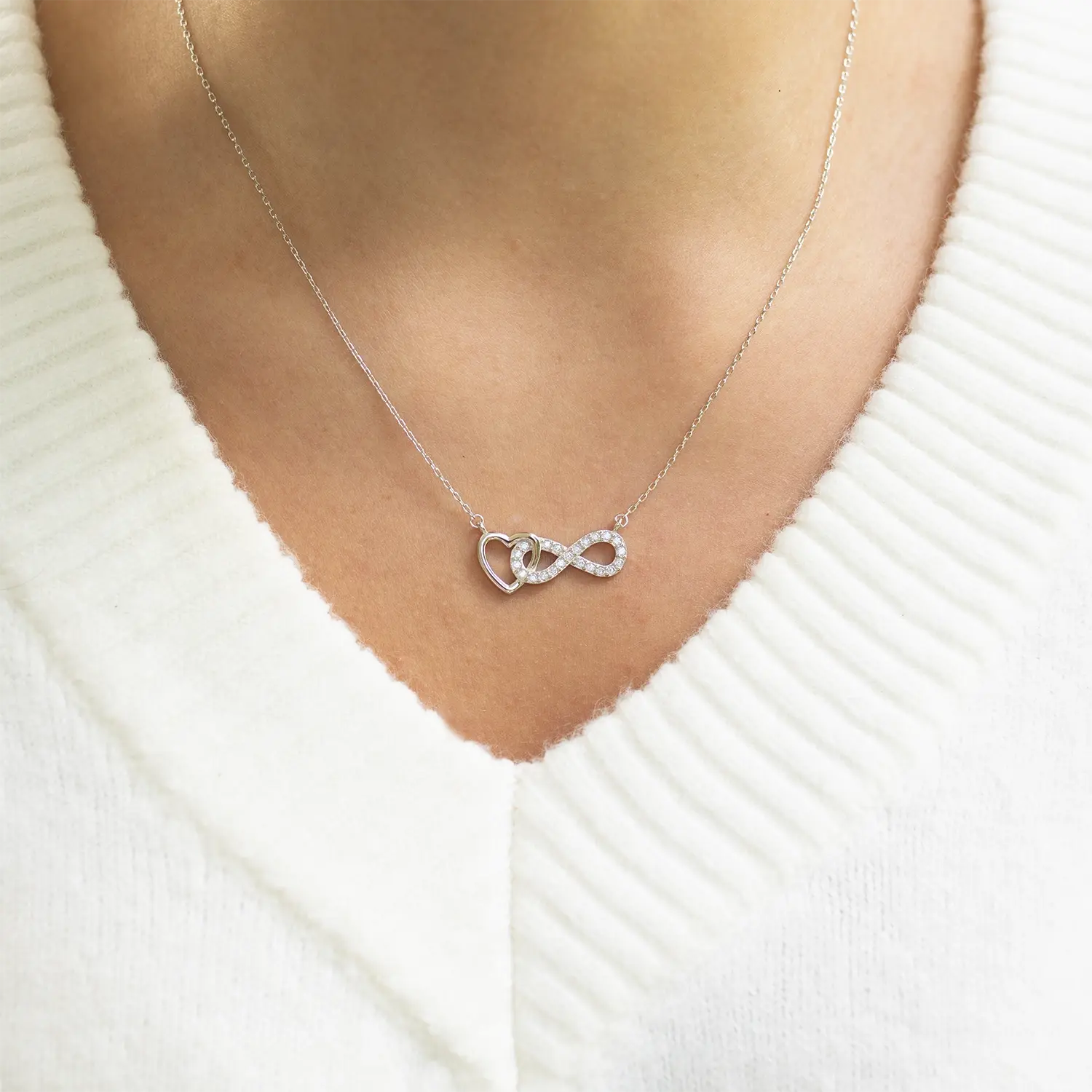 Serce i znak nieskończoności to świadectwo słów … „Kocham na zawsze”, „Jesteśmy jednością”. To gest, który wyraża uczucia bez zbędnych słów, dzięki temu pozostaje w sercu i głowie. To moc niewypowiedzianej deklaracji, którą rozumie każdy, kto nosi naszyjnik srebrny Niekończąca się Miłość.