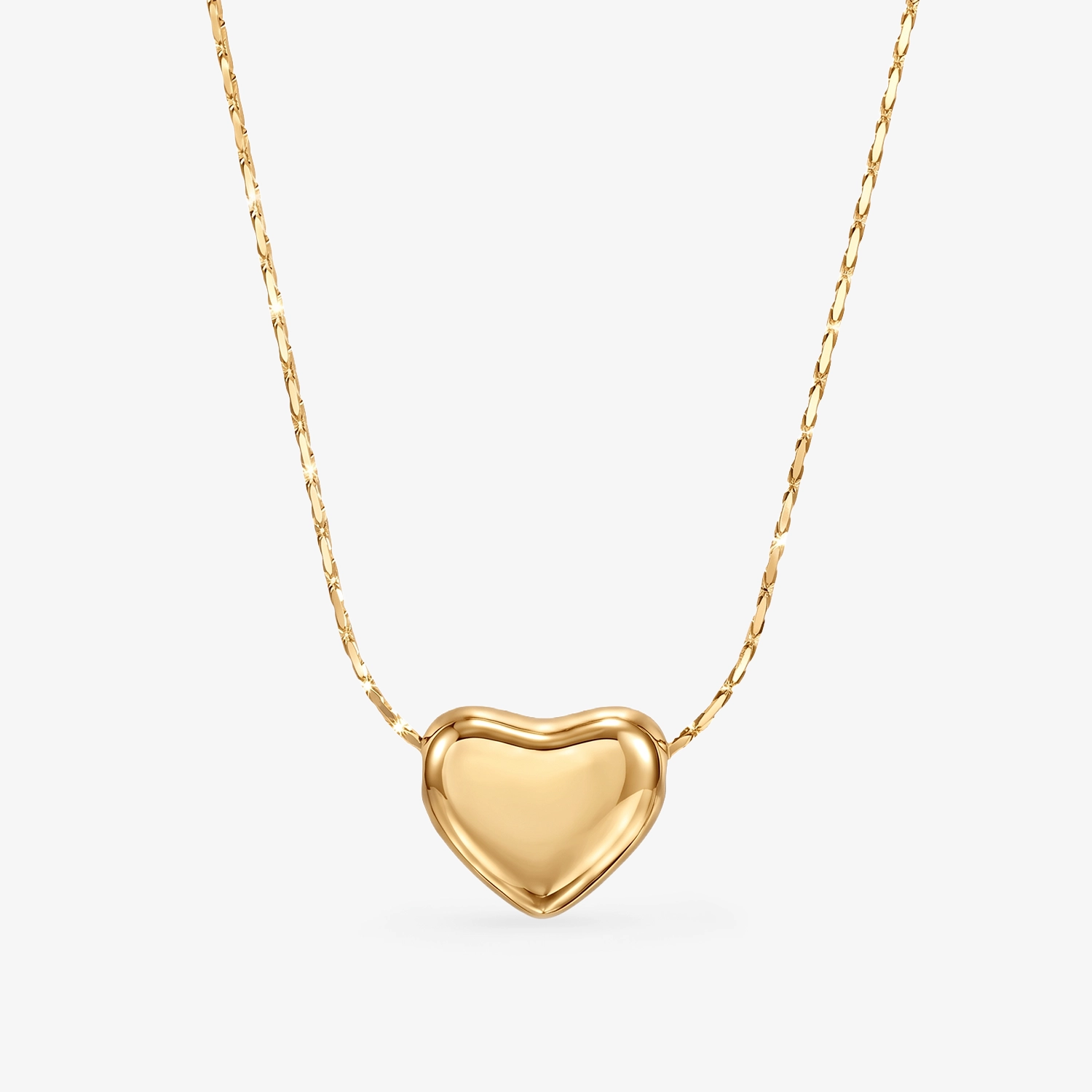 Naszyjnik ze stali Elquavis definiuje nowoczesną elegancję, ponieważ łączy minimalistyczną formę z wyrazistym, lustrzanym efektem. Centralnym punktem tego projektu jest zawieszka w kształcie serca (Puffy Heart), która wyróżnia się miękką, „puchatą” bryłą. Wysoki połysk oraz powłoka PVD nadają powierzchni efekt lustra i intensywnie odbijają światło przy każdym ruchu.