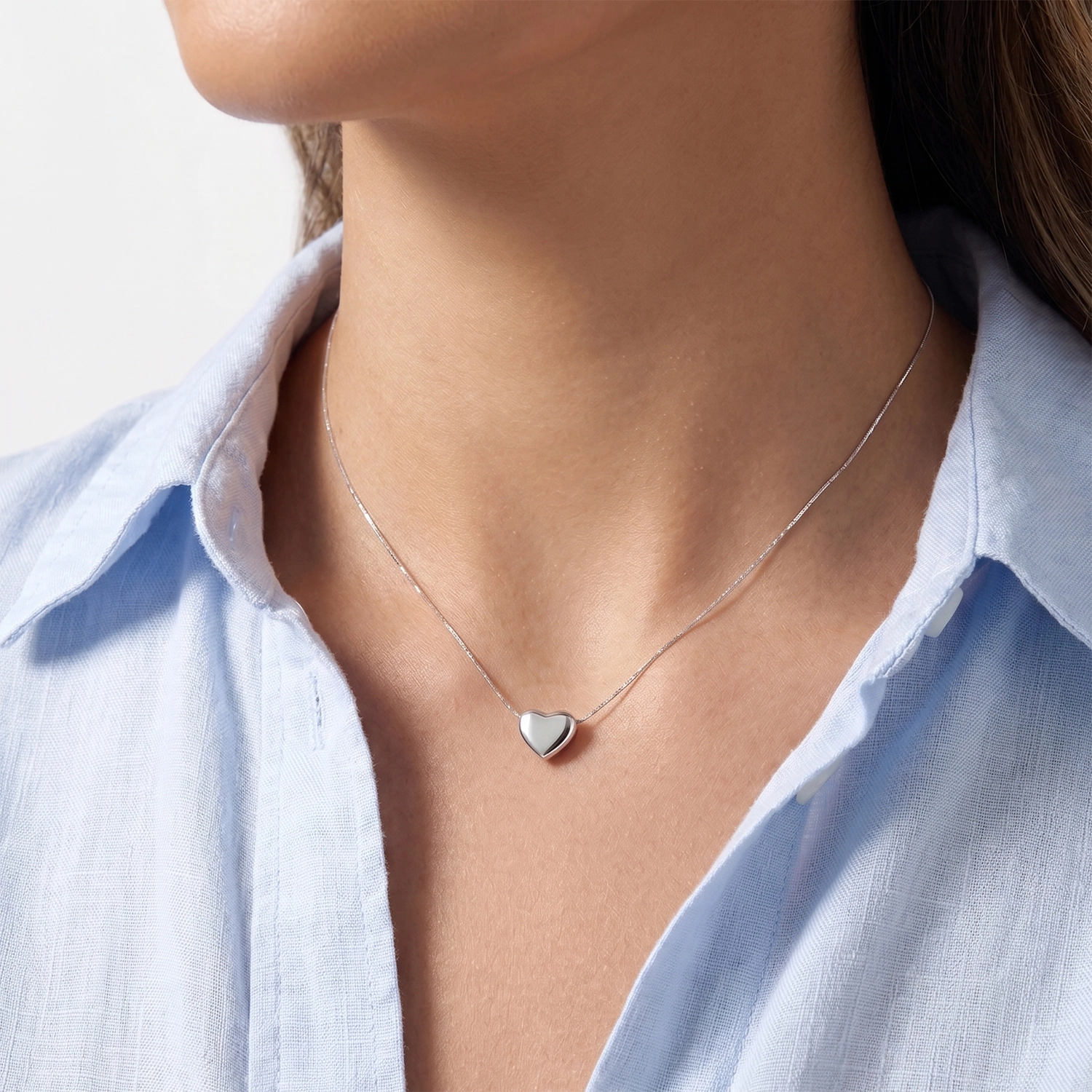 Zawieszka przyciąga uwagę, ponieważ buduje subtelny, ale wyraźny punkt centralny stylizacji. Bezszwowa konstrukcja sprawia, że łańcuszek gładko przechodzi bezpośrednio przez serce, dlatego zawieszka wygląda jak zawieszona w powietrzu. Efekt 3D podkreśla wypukłość formy z obu stron, a to nadaje jej elegancką masywność przy jednoczesnym zachowaniu lekkości. Ten naszyjnik to połączenie romantycznego symbolu z surowym, nowoczesnym sznytem. Serce zostało zawieszone na niezwykle modnym łańcuszku o splocie bardzo drobnego ClipoMio Strong (micro-paperclip). To właśnie te detale sprawiają, że ten model wyróżnia się na tle klasycznej biżuterii. Cieniutki, gęsto pleciony łańcuszek harmonizuje z gładką powierzchnią wisiorka i tworzy spójną, lśniącą całość.