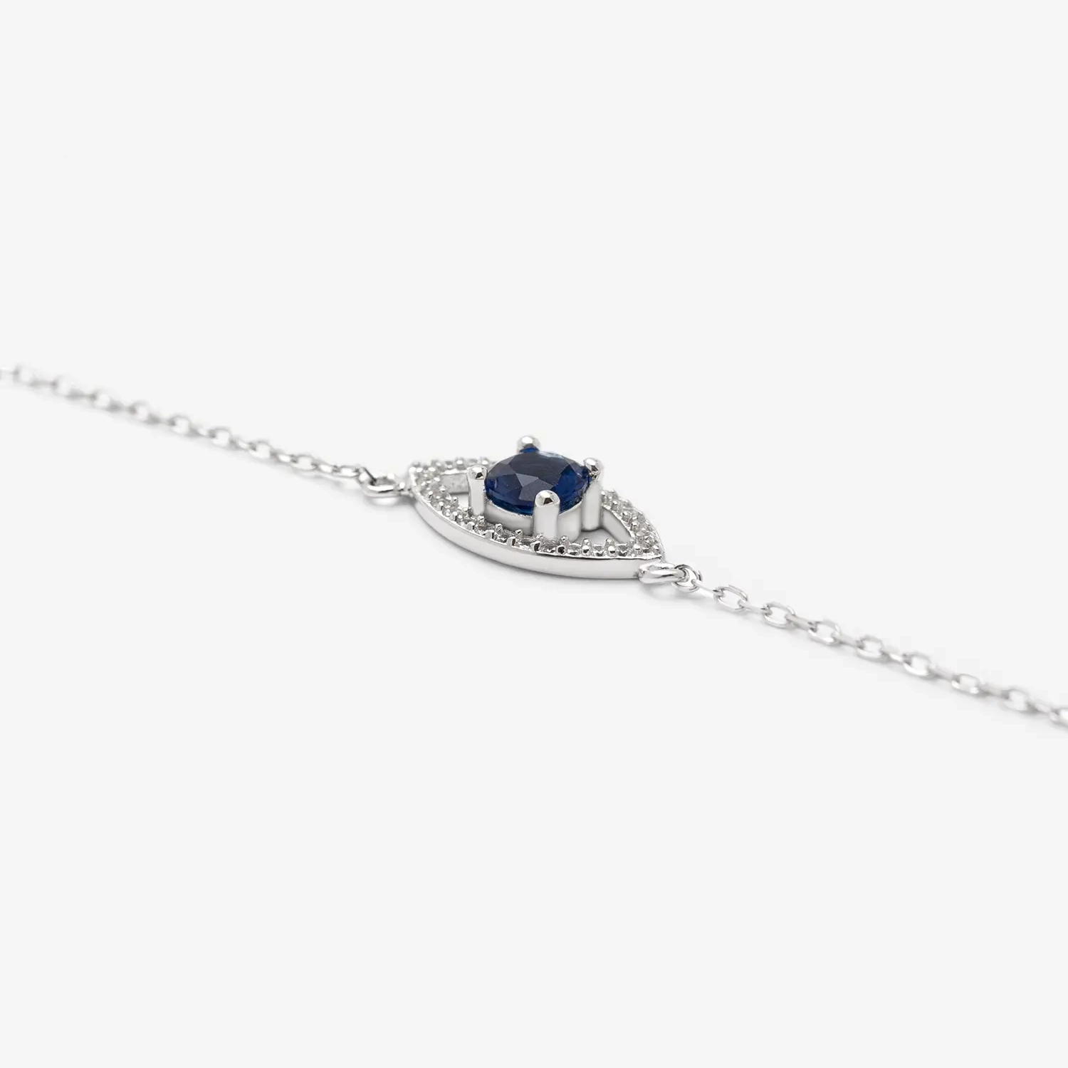 Naszyjnik Oko Proroka zawiera trzy subtelnie połączone ze sobą łańcuszki typu celebrytki. Pierwszy to stylizowane oko z niebieską cyrkonią, dookoła której misternie osadzone są w srebrnej ramce białe cyrkonie. Drugi to ośmioramienna, srebrna gwiazda w centrum, której znajduje się niebieska cyrkonia. Na trzecim znajdują się dwie białe cyrkonie, które są połączone srebrnym łańcuszkiem. Całość wykonana została z wysokiej próby srebra 925, które dzięki swojemu jasnemu, chłodnemu połyskowi pięknie komponuje się z każdym odcieniem skóry, niezależnie od pory roku. Srebro od wieków symbolizuje intuicję, czystość i kontakt z wewnętrzną prawdą, a Oko Proroka doskonale uzupełnia tę symbolikę.