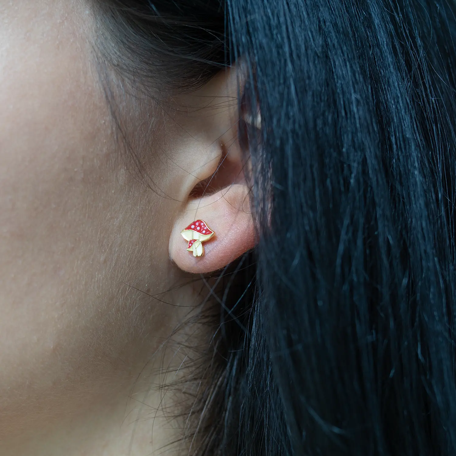 Zaprojektowaliśmy je dla osób, które kochają jesień, aromat dyni, spacer po lesie i kolory sezonu. Grzybczki są doskonałym dodatkiem do codziennych stylizacji, ale także cudnie podkreślają wyjątkowe chwile. Pozłacane wkrętki srebrne 925 stają się uroczą ozdobą podczas pracy, przy kawie z przyjaciółką. Ale także podczas jesiennych wieczornych spotkań w przytulnej atmosferze. Dzięki ciepłemu połączeniu złota, czerwieni i bieli, kolczyki te harmonijnie komponują się z włosami blond, odcieniami rudymi i ciemnymi. Podkreślają kolor zielonych i brązowych oczu, a niebieskim dodają wyjątkowej głębi. Świetnie prezentują się zarówno przy rozpuszczonych włosach, jak i romantycznych upięciach, niskich kokach czy też luźnych warkoczach.