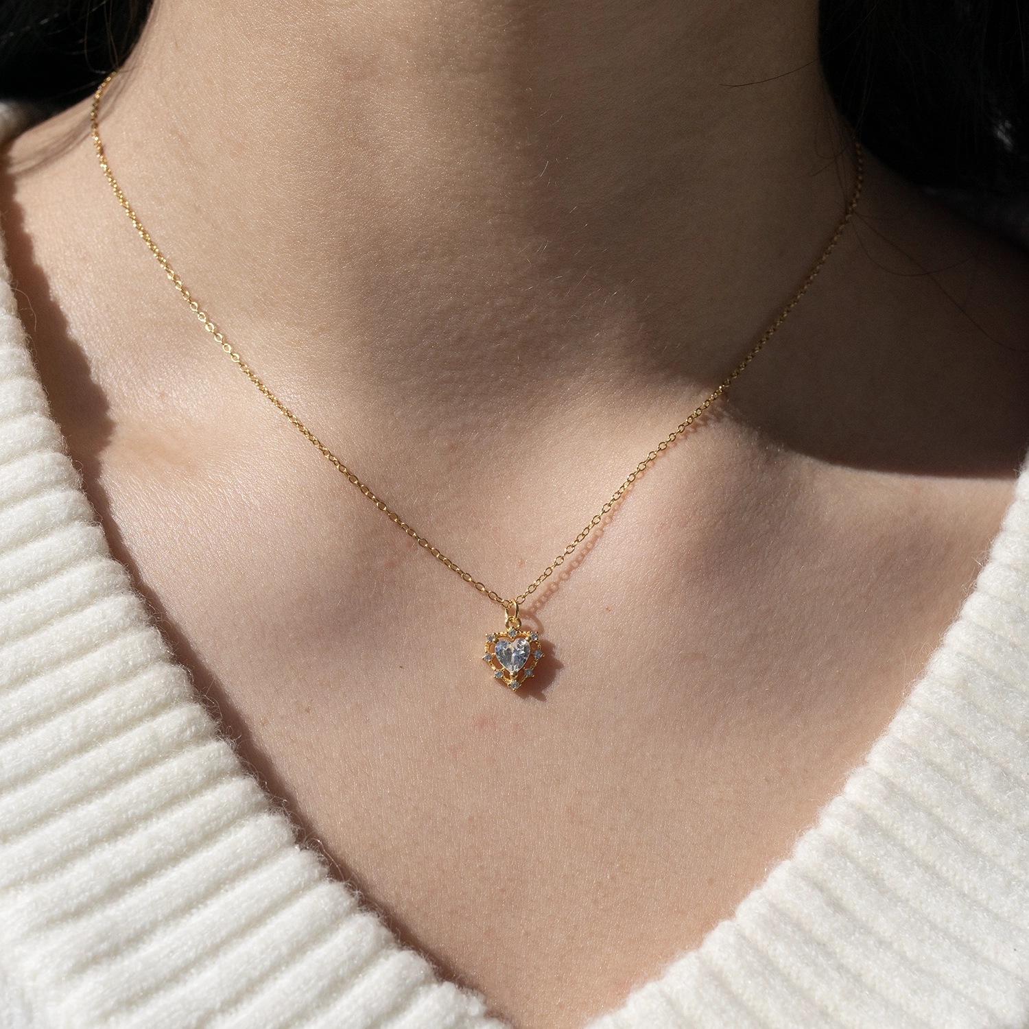 Centralna cyrkonia w kształcie serca skupia całą energię, natomiast otaczające ją cyrkonie potęgują jej naturalny blask. Każdy Twój ruch wywołuje subtelne refleksy, dlatego biżuteria nigdy nie pozostaje statyczna. Złocona powierzchnia świetnie oddaje ciepło kompozycji, a to dodatkowo nadaje jej szlachetny charakter.