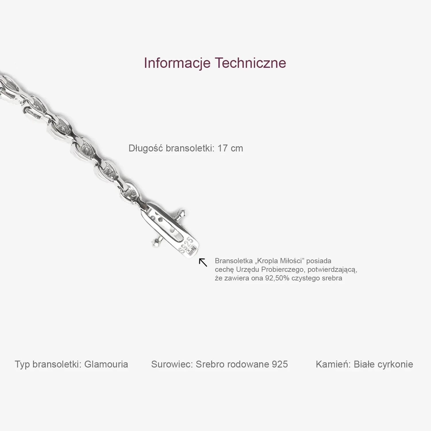 Srebrna bransoletka do ślubu Kropla Miłości. Wersja romantyczno-wieczorowa, która jest delikatna w działaniu.