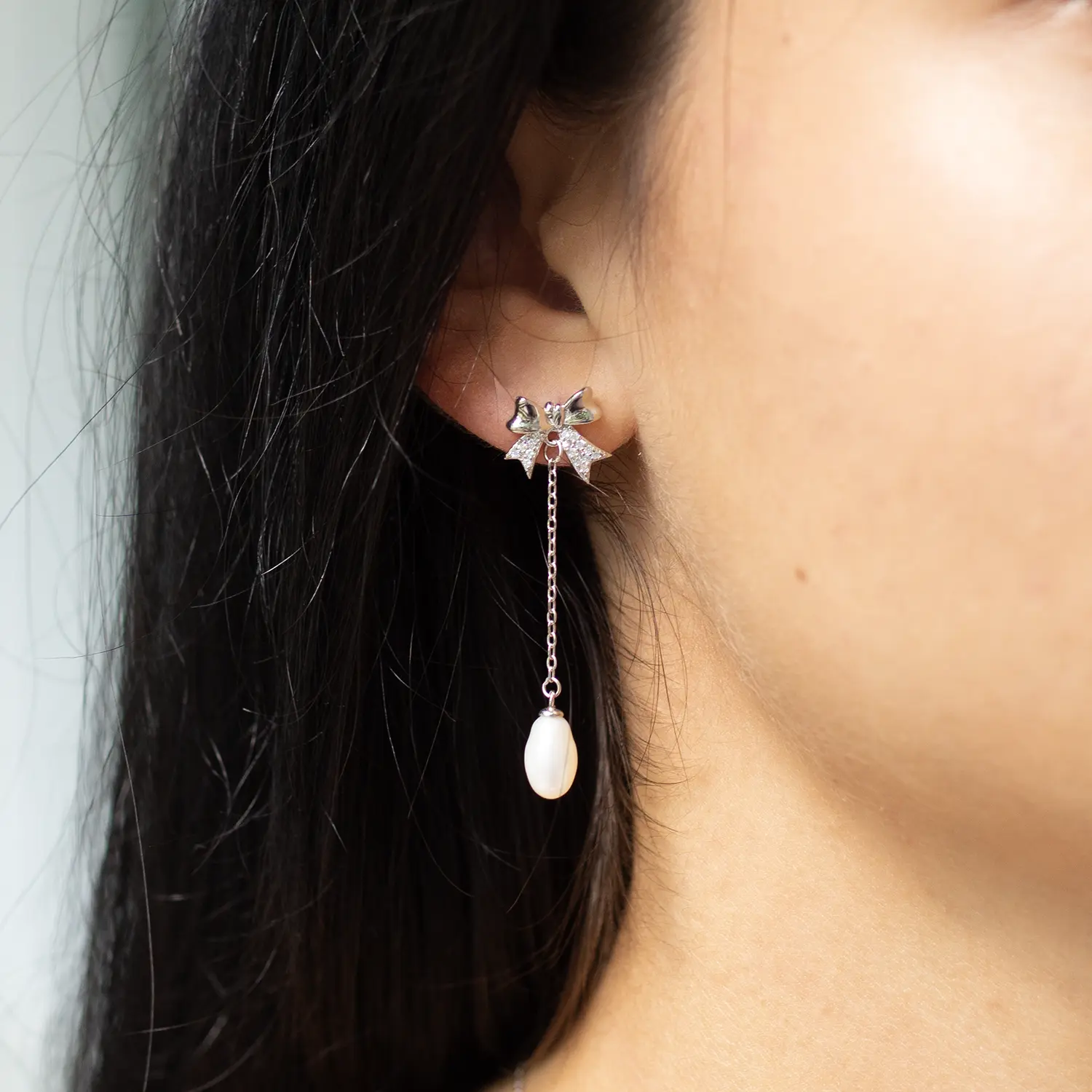 Srebrne 925 kolczyki wiszące z perłą – Perłowy Urok.