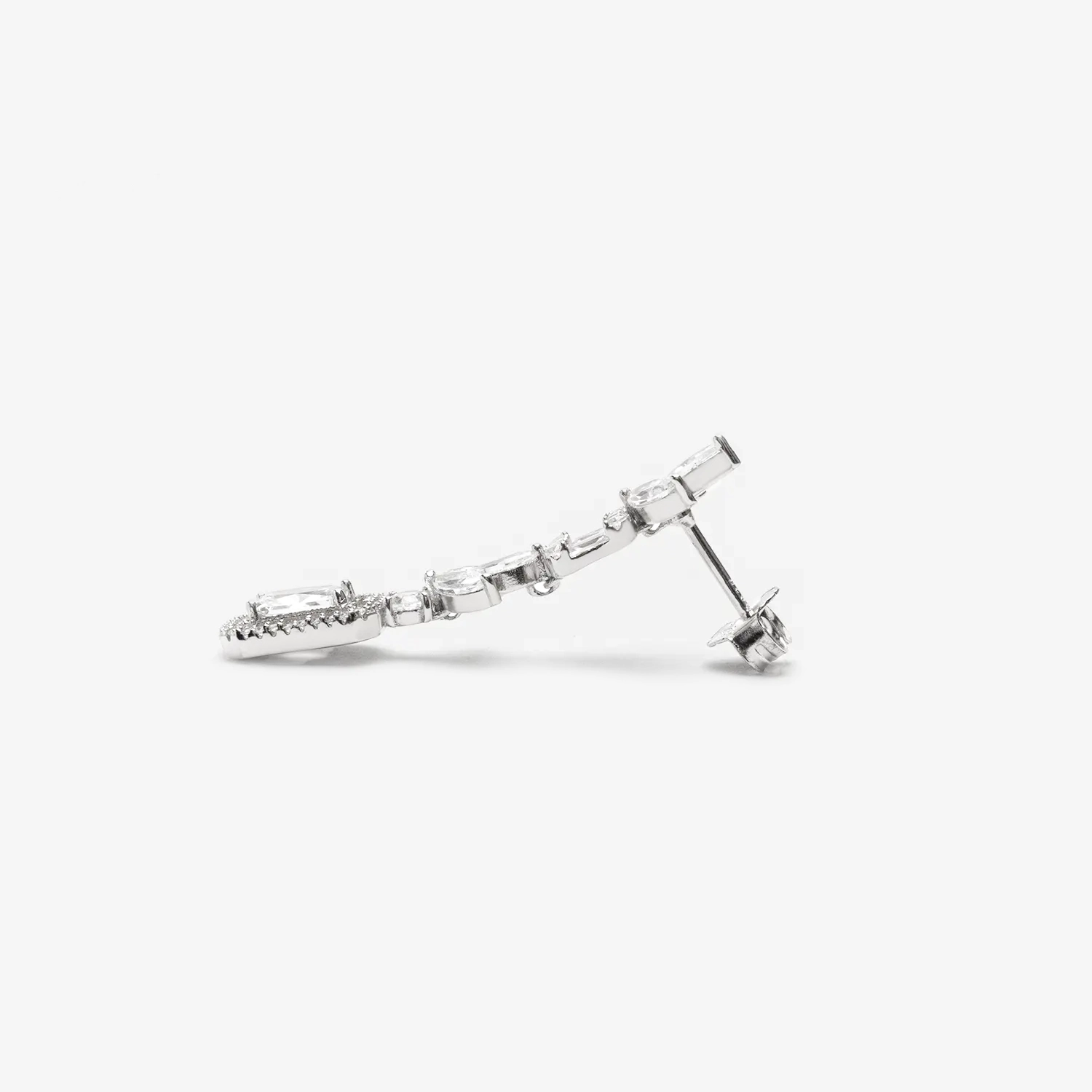 Głównym elementem tych srebrnych kolczyków do ślubu są liście, subtelnie wyprofilowane i zdobione białymi cyrkoniami. To jakby każdy liść był symbolem rosnącej miłości, która rozkwita w dniu ślubu obiecując wieczną więź i zaangażowanie.
