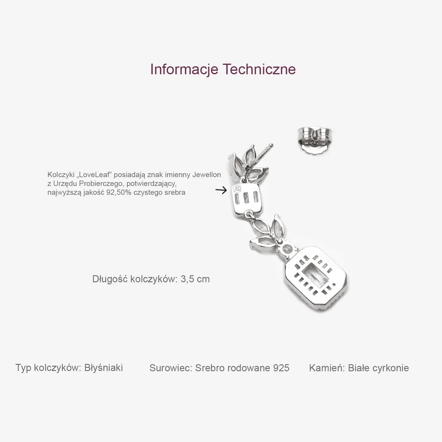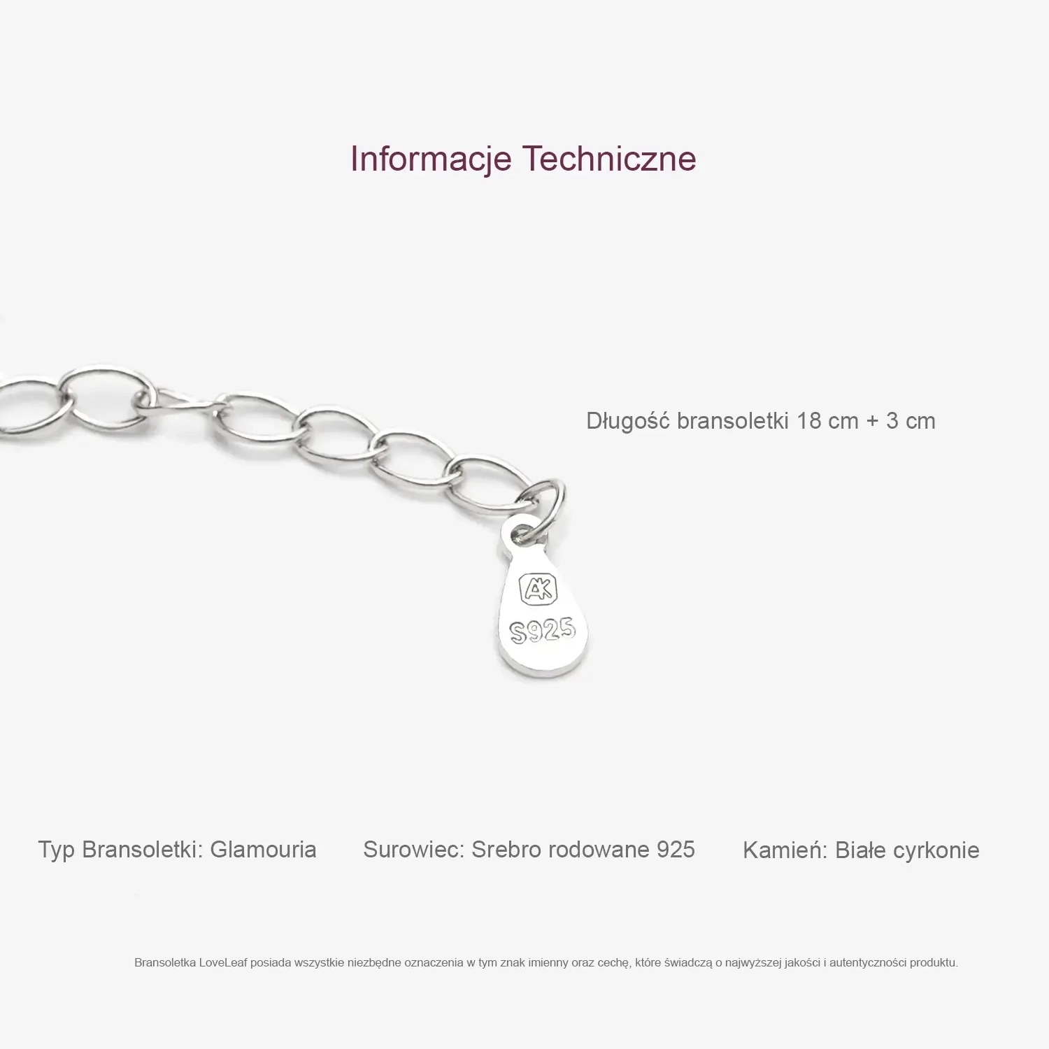 Głównym motywem kompletu LoveLeaf są liście, które symbolizują rosnącą miłość i zaangażowanie. W naszyjniku, kolczykach i bransoletce liście są delikatnie wyprofilowane i ozdobione białymi cyrkoniami, które błyszczą niczym gwiazdy na niebie. To jakby każda cyrkonia była iskrą miłości, która rozprasza się wokół dodając magii i uroku całemu kompletowi.