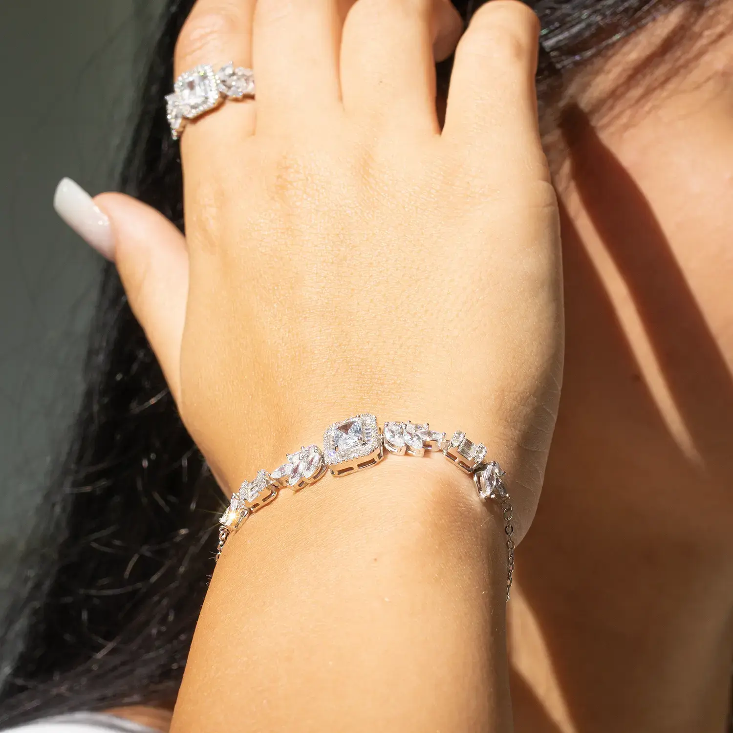 Srebrny komplet do ślubu LoveLeaf emanuje delikatnością i pięknem idealnie podkreślając wyjątkowy dzień Panny Młodej. Naszyjnik wiszący lekko na szyi, kolczyki o subtelnym zawieszeniu i bransoletka, która ozdabia nadgarstek – to doskonałe połączenie elegancji i subtelności.