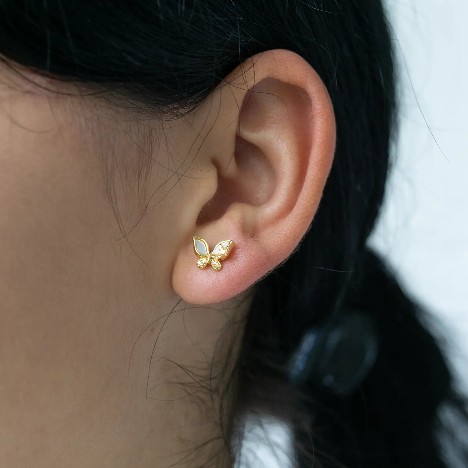 Każdy motyl w kolczykach przybrał unikalny kształt. Na jednym ze skrzydełek motyla umieściliśmy malutkiego motylka, który symbolizuje spotkanie dwóch dusz, ale także drobne radości i nieprzewidywalność życia. Dolne skrzydła ozdobiliśmy połyskującymi, białymi cyrkoniami. Dodają blasku, a kontrast srebra 999 w wersjach pozłacanej 18K, podkreśla elegancję i subtelność wzoru. Ten detal jakim jest miniaturowy motylek na skrzydle, jest tym, co przynosi klientom wyjątkową radość i poczucie unikalności.