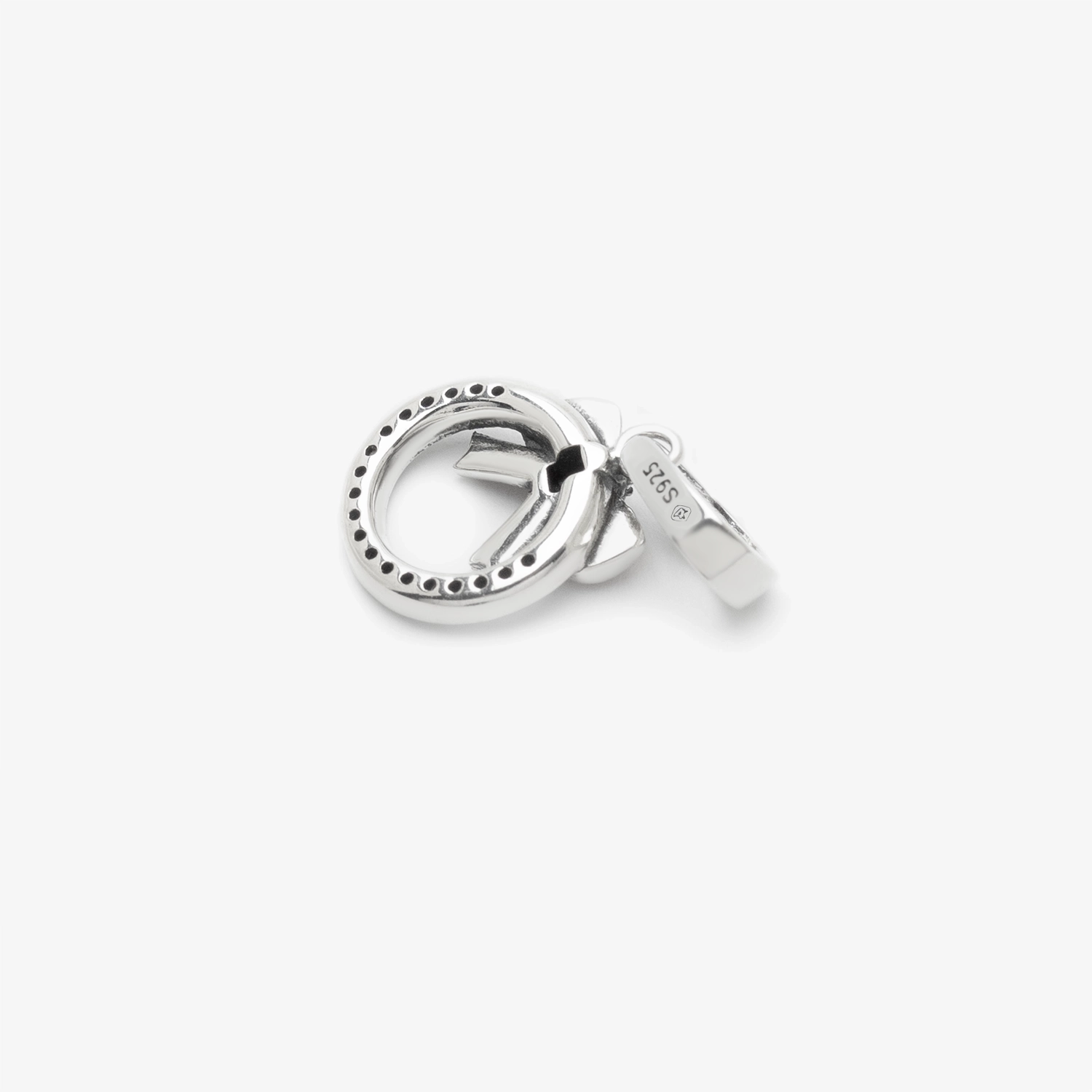 Proces malowania kokardki wymaga precyzji i dużej uważności, dlatego każdy egzemplarz zyskuje indywidualny charakter. Ramię zawieszki zdobi delikatny, srebrny uchwyt z drobnymi cyrkoniami, które płynnie przechodzą w pozostałe elementy, wzmacniając poczucie spójności. Okrągły kształt wianuszka od wieków symbolizuje wieczność oraz ciągłość relacji. Umieszczona w centrum kokardka kojarzy się z darem, wdzięcznością i troską, dzięki czemu całość staje się biżuterią o pięknej, klarownej symbolice.