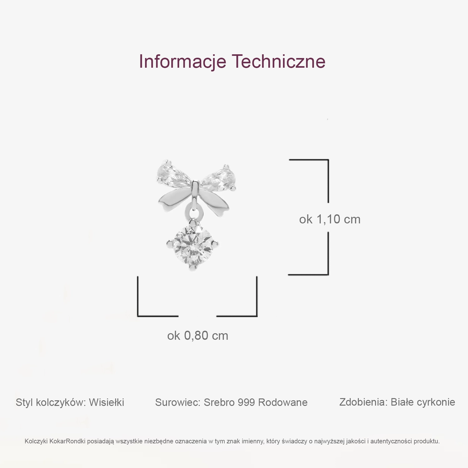 Wkrętki srebrne 999 wisiełki KokarRondki to esencja kobiecości, w której kokardka symbolizuje delikatność i wdzięk, a okrągła cyrkonia – czystość i doskonałość.