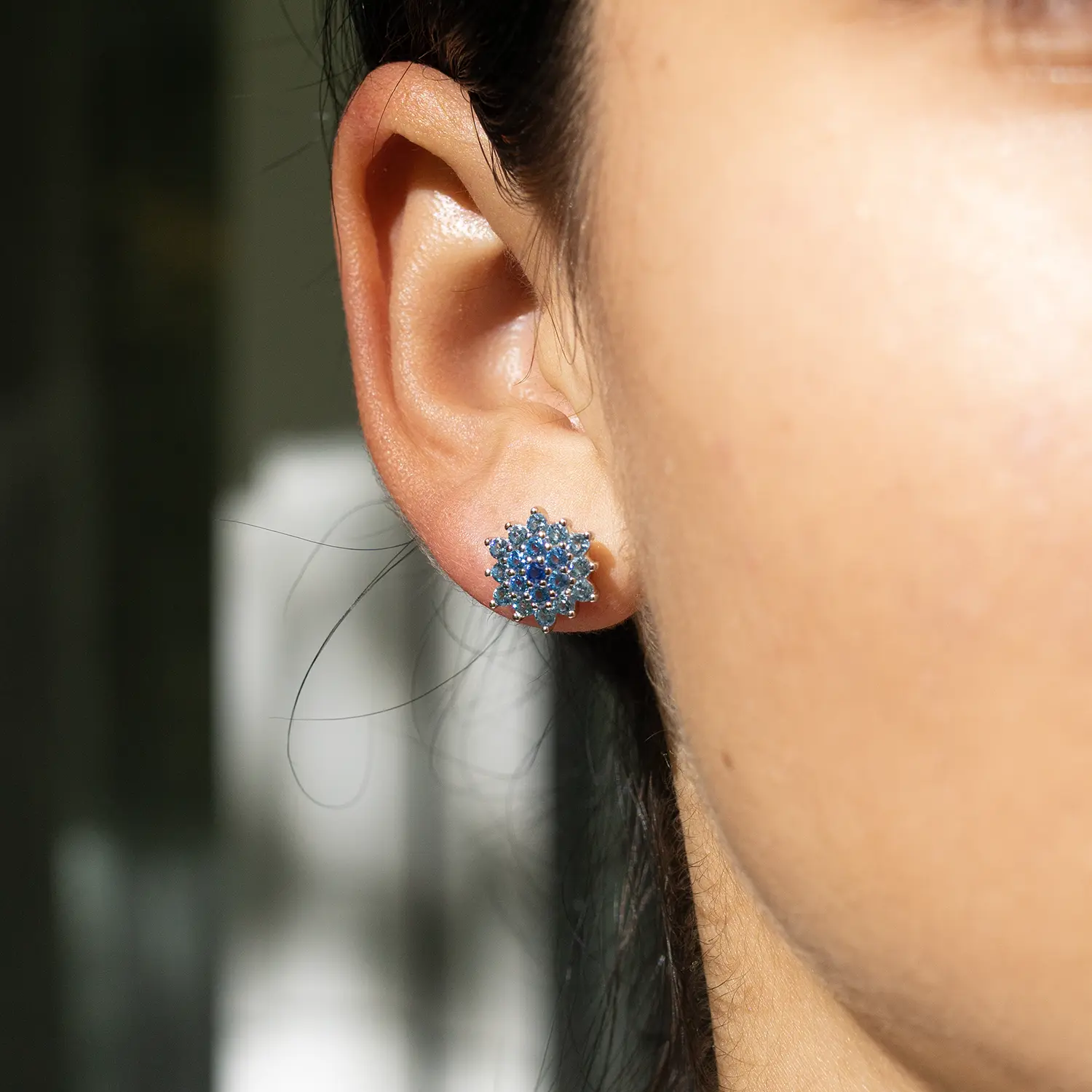 Każdy kolczyk to precyzyjnie ułożony kwiat lotosu z płatkami w gradientach jasnych i ciemniejszych odcieni niebieskiego. Psychologia koloru podkreśla, że niebieskie odcienie wzmacniają poczucie spokoju, a także klarowności myśli i pewności siebie. Mistrz Jin‑Lan zajmujący się Feng Shui, który współpracuje z LuaMio, zwraca uwagę na rolę srebra i drobnych akcentów w tworzeniu harmonijnej oraz uporządkowanej estetyki.